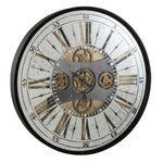 Horloge Murale Chiffres Romains Miroir 78cm Noir