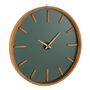 Informations Techniques : Dimensions : L. 40 x l. 40 x H. 5 cm Matières : Bois & Verre Spécificités : Tendance & Pratique Horloge Murale Forme Ronde Poids : 1,9 kg Couleur : Marron & Noir