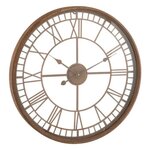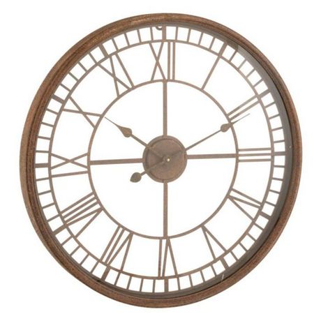 Informations Techniques : Dimensions : L. 67 x l. 67 x H. 6,5 cm Matières : Métal & Verre Spécificités : Tendance & Pratique Horloge Murale Forme Ronde Chiffres Romains Poids : 5,3 kg Couleur : Rouille