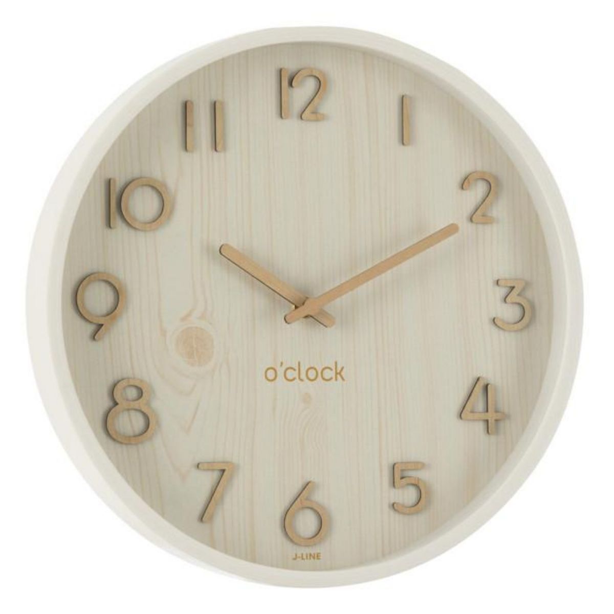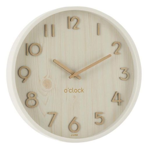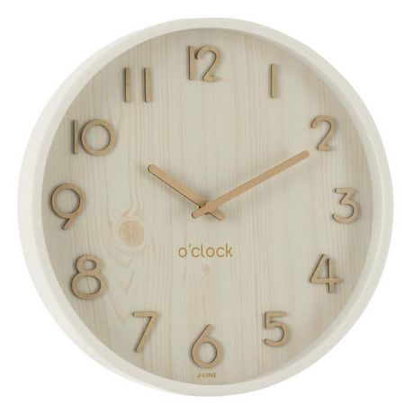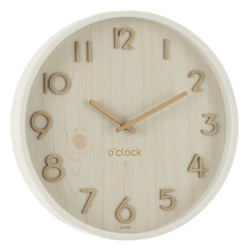Informations Techniques : Dimensions : L. 30 x l. 4,5 x H. 30 cm Matières : Bois (Contreplaqué) & MDF Spécificités : Déco & Tendance Horloge murale ronde Chiffres analogiques Fonctionne à pile Pile non incluse Poids : 0,96 kg Couleur : Blanc