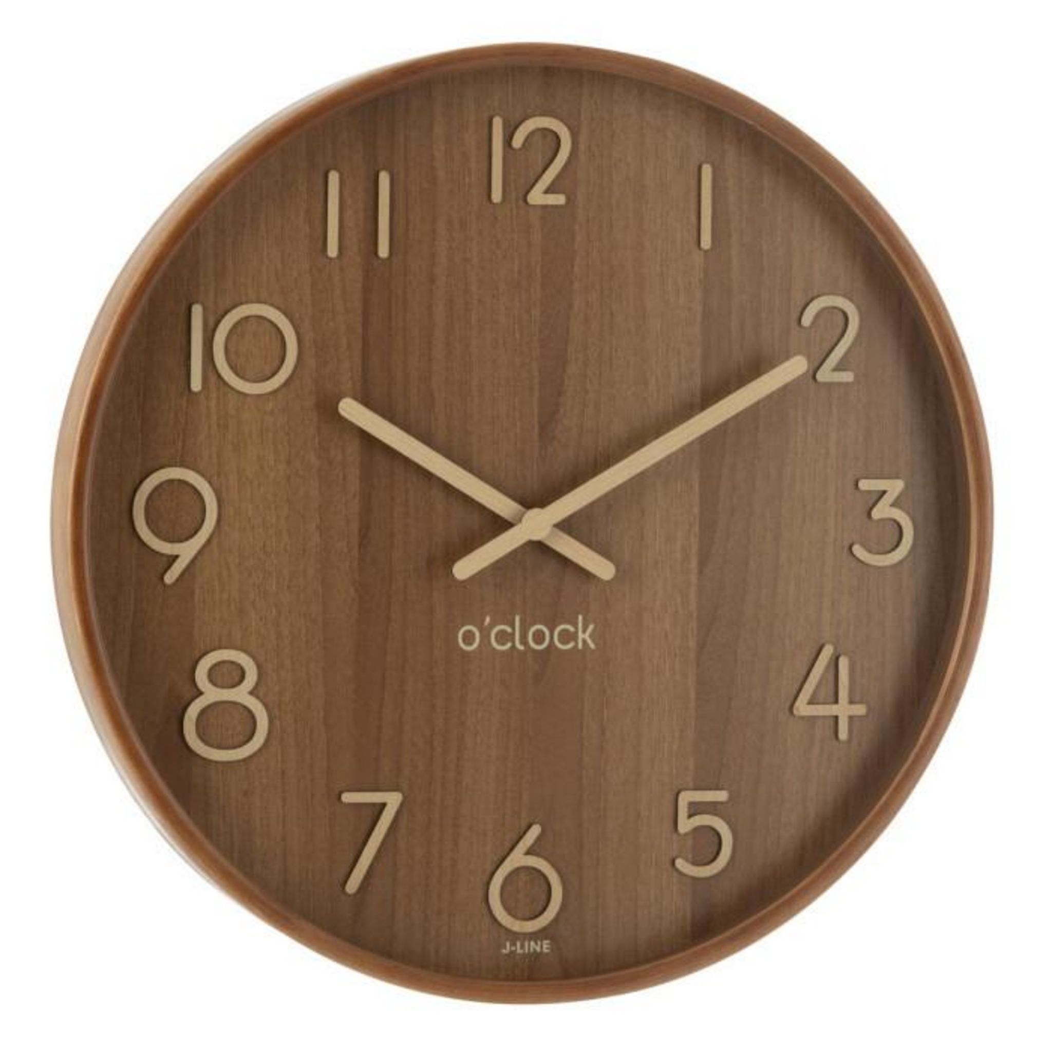 Informations Techniques : Dimensions : L. 53 x l. 5,5 x H. 53 cm Matières : Bois (Contreplaqué) & MDF Spécificités : Déco & Tendance Horloge murale ronde Chiffres analogiques Fonctionne à pile Pile non incluse Poids : 3 kg Couleur : Marron