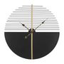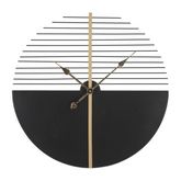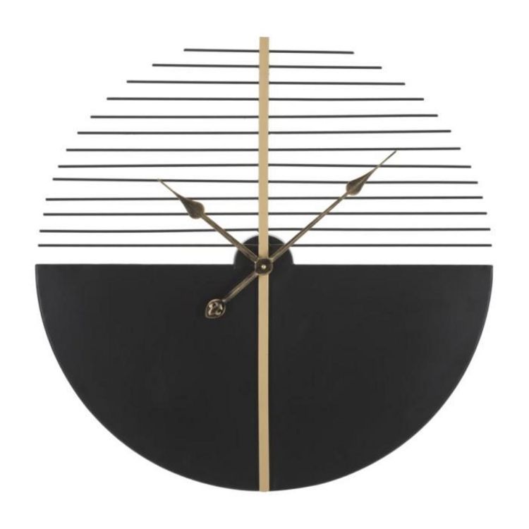 Informations Techniques : Dimensions : L. 60 x l. 4,5 x H. 60 cm Matière : Métal Spécificités : Design & Utile Horloge murale ronde Sans chiffres Pile non incluse Type de pile : 1 x AA Poids : 1,5 kg Couleur : Noir & Or