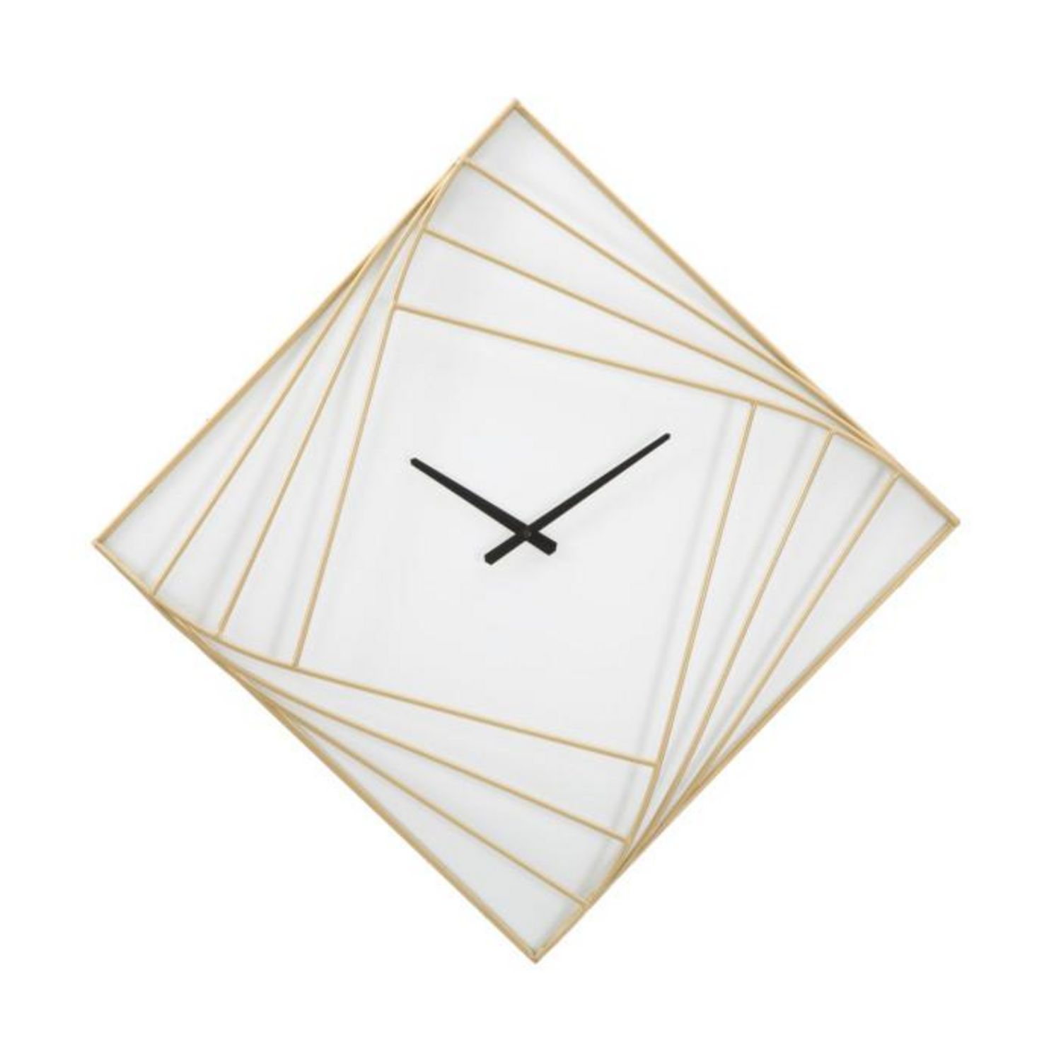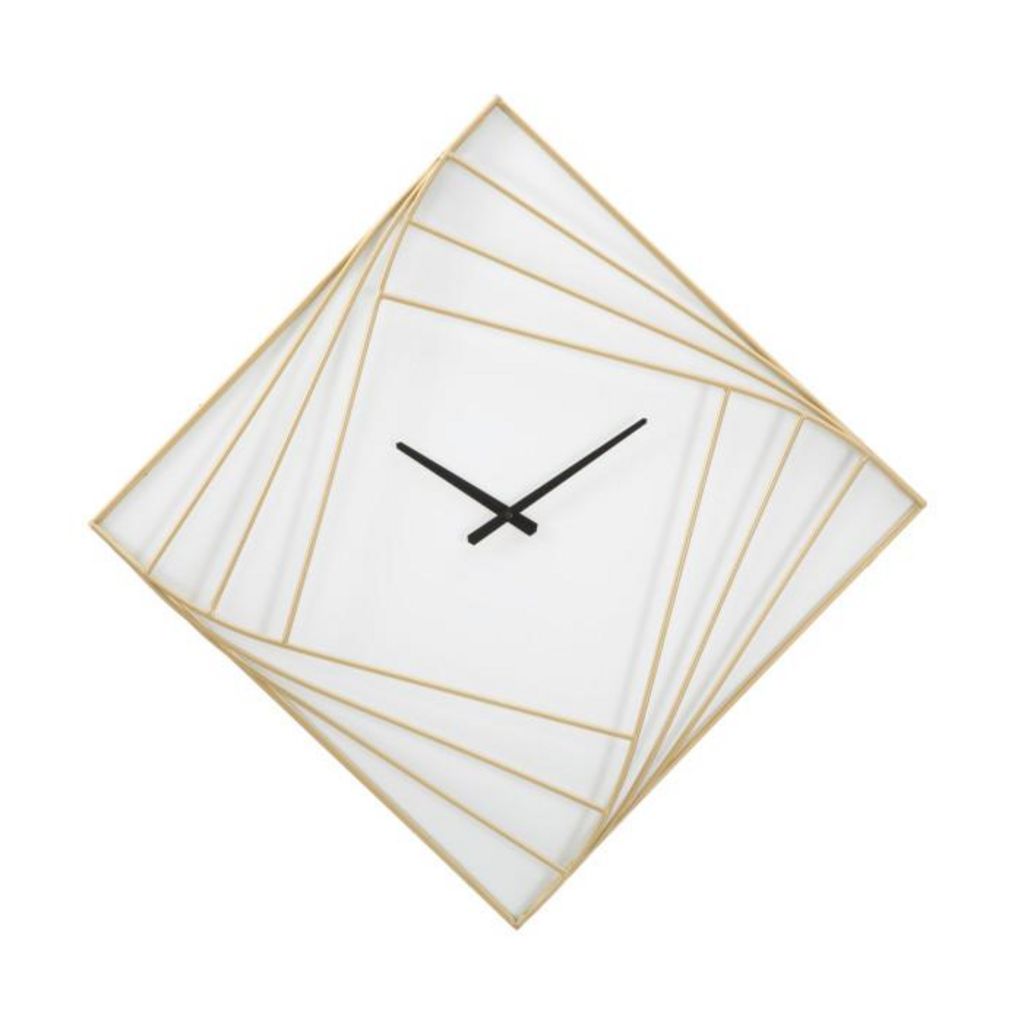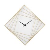 Informations Techniques : Dimensions : L. 85 x l. 6 x H. 85 cm Matières : Métal & Plastique Spécificités : Élégante & Utile Horloge murale carrée Design lignes Sans chiffres Pile non incluse Type de pile : 1 x AA Poids : 2,97 kg Couleur : Or