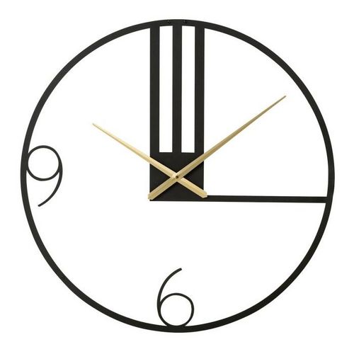 Informations Techniques : Dimensions : D. 69 x H. 0,5 cm Matière : Métal Spécificités : Déco & Utile Horloge murale Forme ronde Poids : 0,85 kg Couleur : Noir