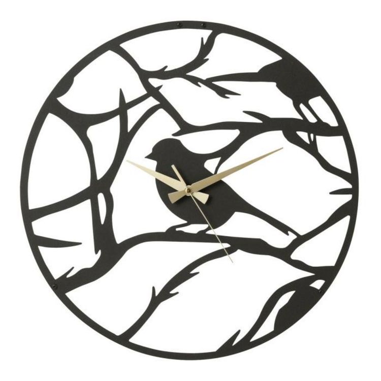 Horloge Murale en Métal Oiseau 49cm Noir