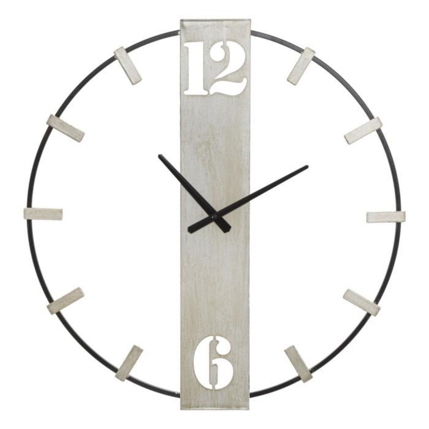 Informations Techniques : Dimensions : L. 61 x l. 4,5 x H. 61 cm Matière : Métal Spécificités : Élégante & Utile Horloge murale ronde Pile non incluse Type de pile : AA Poids : 1,05 kg Couleur : Argent & Noir