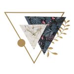 Informations Techniques : Dimensions : L. 75 x l. 4,5 x H. 59 cm Matières : Métal & MDF Spécificités : Originale & Utile Horloge murale déco 3 triangles superposés Imprimé marbre et végétal Design branche Sans chiffres Pile non incluse Type de pile : 1 x AA Poids : 1,4 kg Couleur : Multicolore