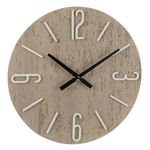 Informations Techniques : Dimensions : L. 58,5 x l. 5 x H. 58,5 cm Matières : 60% MDF & 40% Pierre Spécificités : Déco & Utile Horloge murale ronde Chiffres analogiques Fonctionne à pile Pile non incluse Poids : 3,37 kg Couleur : Multicolore