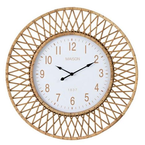Informations Techniques : Dimensions : L. 61,5 x l. 2,5 x H. 61,5 cm Matières : Rotin, Bambou & Bois (Contreplaqué) Spécificités : Déco & Utile Horloge murale ronde Inscription Maison 1837 Pile(s) non incluse(s) Poids : 1,2 kg Couleur : Naturel & Blanc
