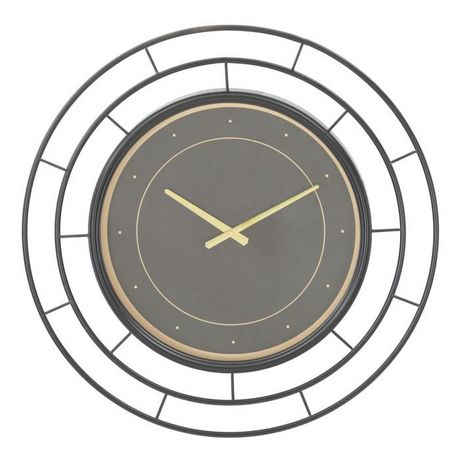 Informations Techniques : Dimensions : L. 70 x l. 5,5 x H. 70 cm Matières : Métal, MDF & Verre Spécificités : Moderne & Utile Horloge murale ronde Sans chiffres Pile non incluse Type de pile : 1 x AA Poids : 1,75 kg Couleur : Noir & Or