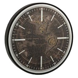 Horloge Murale Mappemonde 80cm Or & Noir