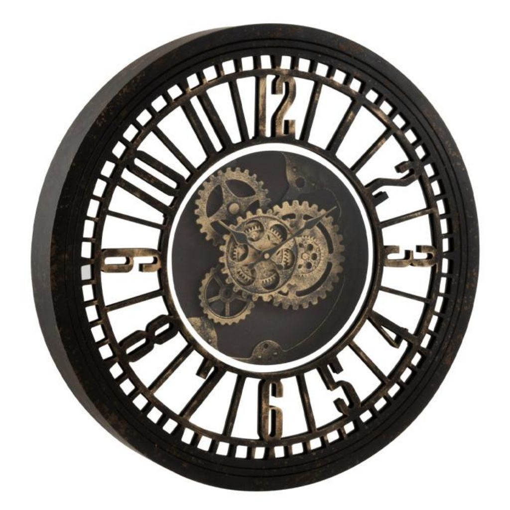 Informations Techniques : Dimensions : L. 60,5 x l. 8,5 x H. 60,5 cm Matière : Métal Spécificités : Tendance & Moderne Horloge Murale Forme Ronde Mécanisme apparent Avec Miroir Style Antique Facile d'entretien & d'utilisation Poids : 4,34 kg Couleur : Noir & Or