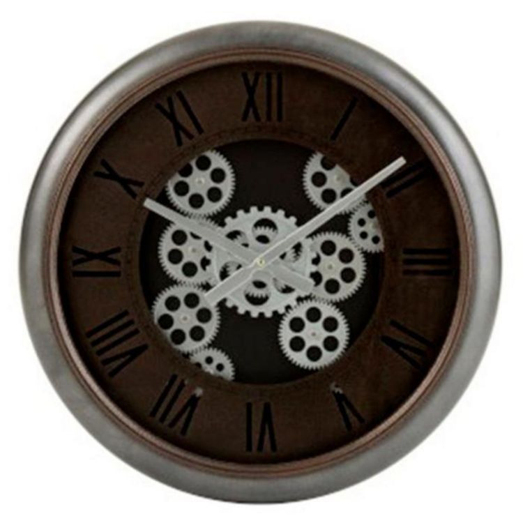 Horloge Murale Ronde Engrenage 52cm Marron & Argent