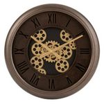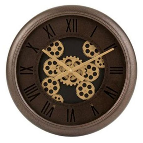 Horloge Murale Ronde Engrenage 52cm Marron & Or