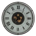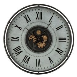 Informations Techniques : Dimensions : D. 109 x H. 9,5 cm Matière : Métal Spécificités : Original & Pratique Horloge Murale Ronde Affichage en Chiffres Romains Facile d'utilisation & d'entretien Poids : 22,16 kg Couleur : Noir & Gris
