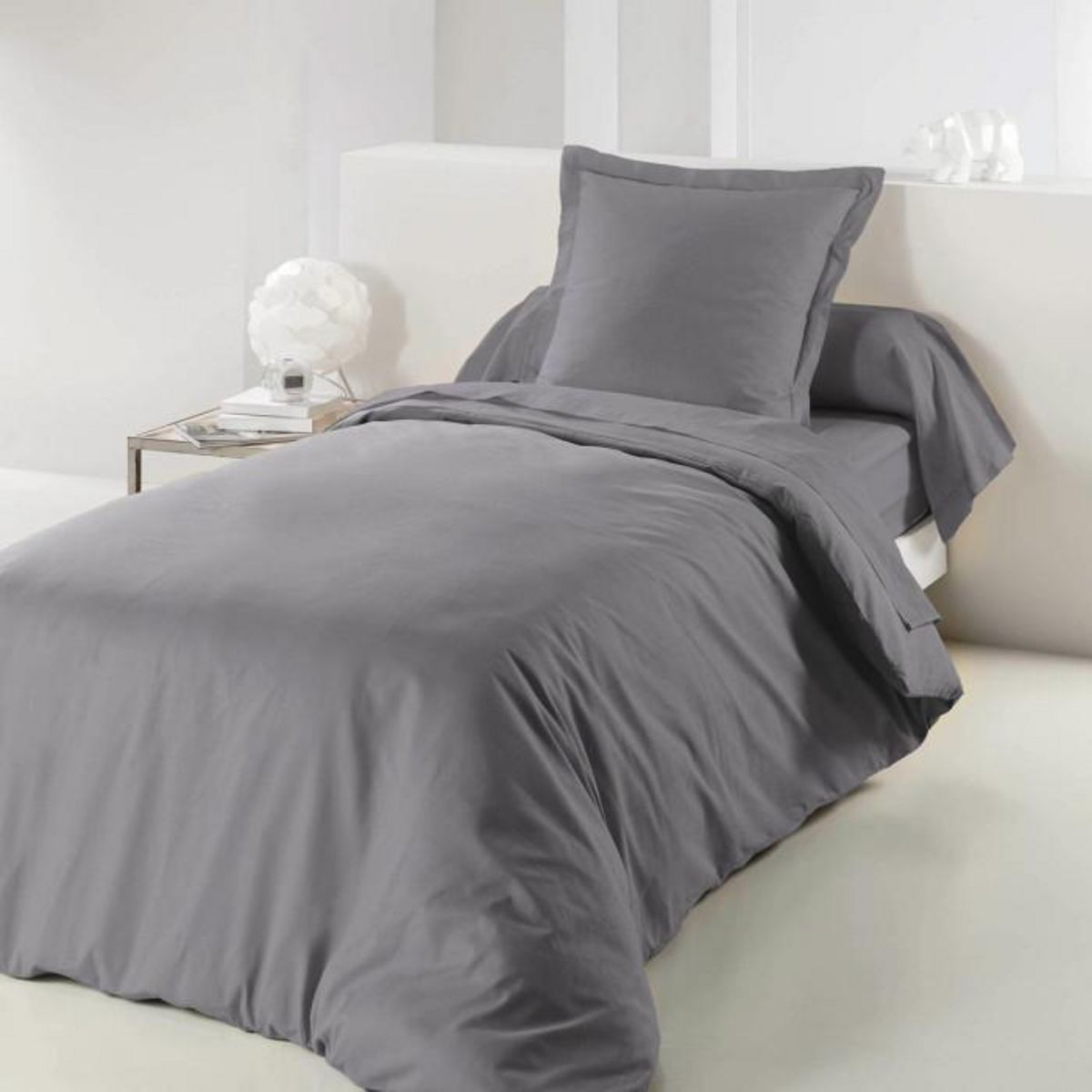 Informations Techniques : Dimensions : L. 200 x l. 140 cm Matière : 100% Coton Spécificités : Pur Coton Convient pour une couette 140x200cm Qualité de tissage 57 fils cm² Fermeture à pression Poids : 0,776 kg Couleur : Gris