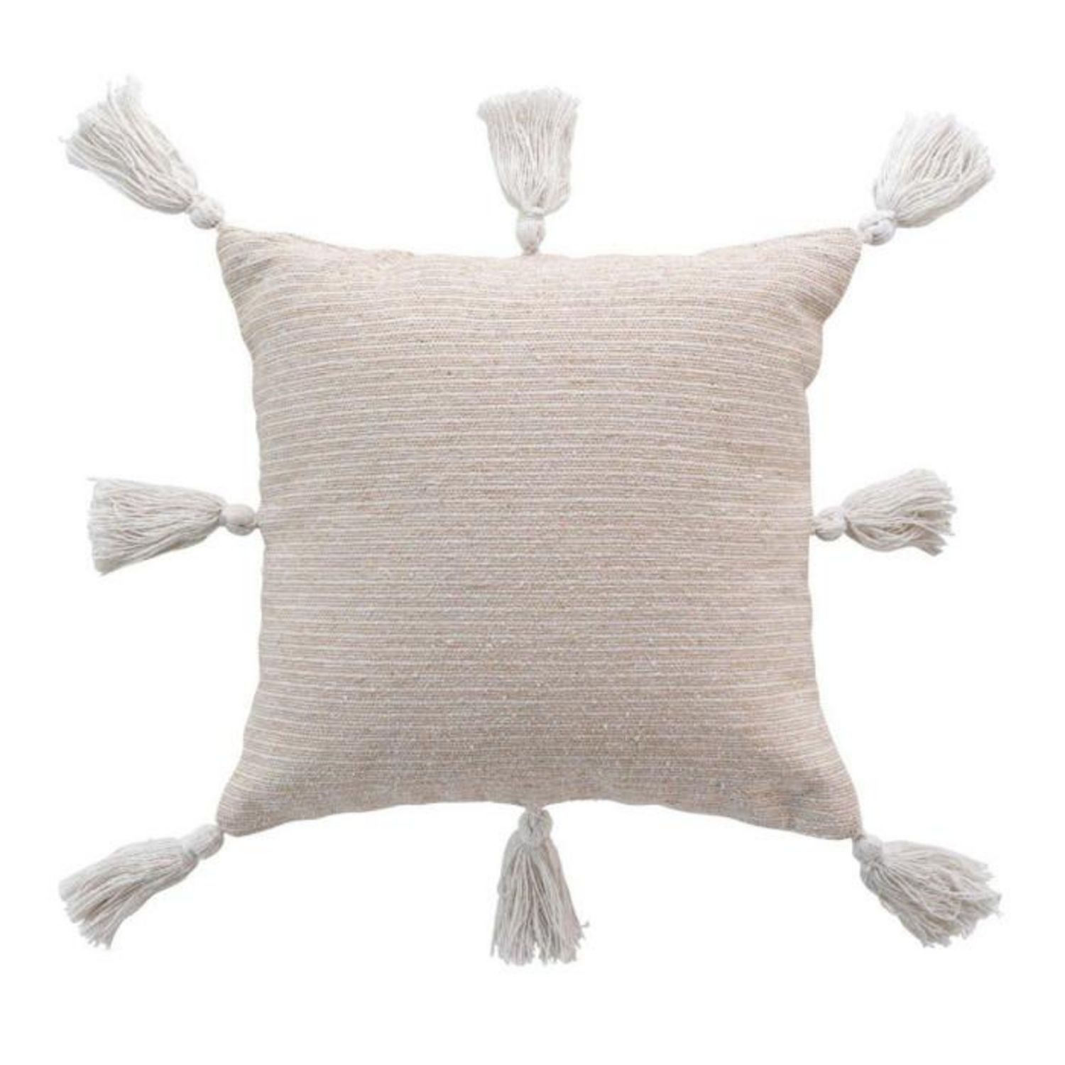 Housse de Coussin à Pompons Ines 40x40cm Beige