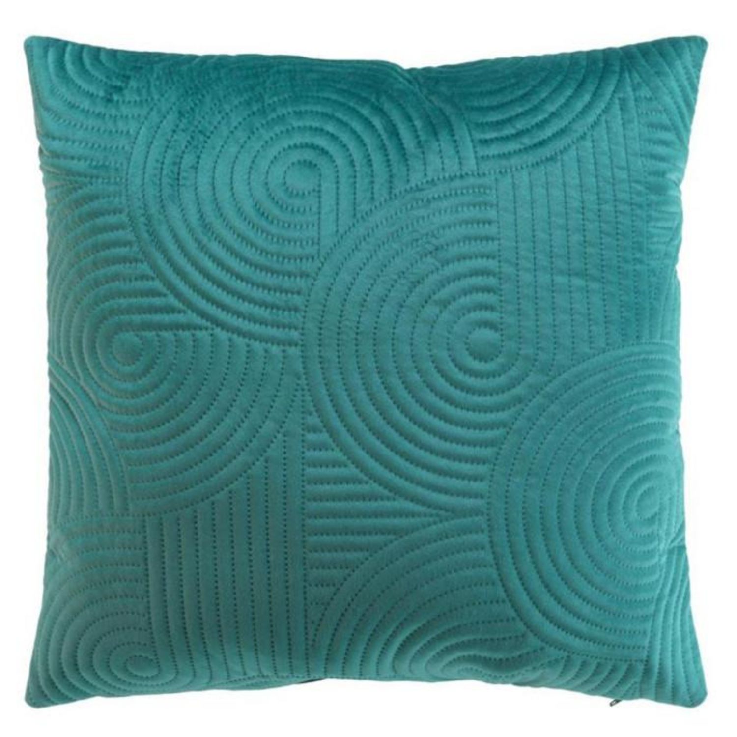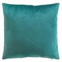 Informations Techniques : Dimensions : L. 40 x l. 40 cm Matière : 100% Polyester Spécificités : Élégant & Doux Housse de coussin carré Motif cercle ton sur ton Tissu velours Fermeture zippée Certification Oeko-Tex Poids : 0,12 kg Couleur : Bleu