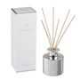 Informations Techniques : Dimensions : D. 9 x H. 27,5 cm Matières : Verre Spécificités : Tendance & Design Huile Parfumée Avec Bâtonnets Forme Ronde Vendue à l'unité Contenance : 150 ml Senteur : Cotton Candy Poids : 0,56 kg Couleur : Argent