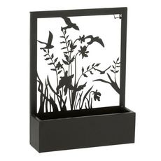 Informations Techniques : Dimensions : L. 31 x l. 8 x H. 41 cm Matière : Métal Spécificités : Déco & Utile Jardinière murale Design plante Forme rectangulaire Poids : 0,87 kg Couleur : Noir