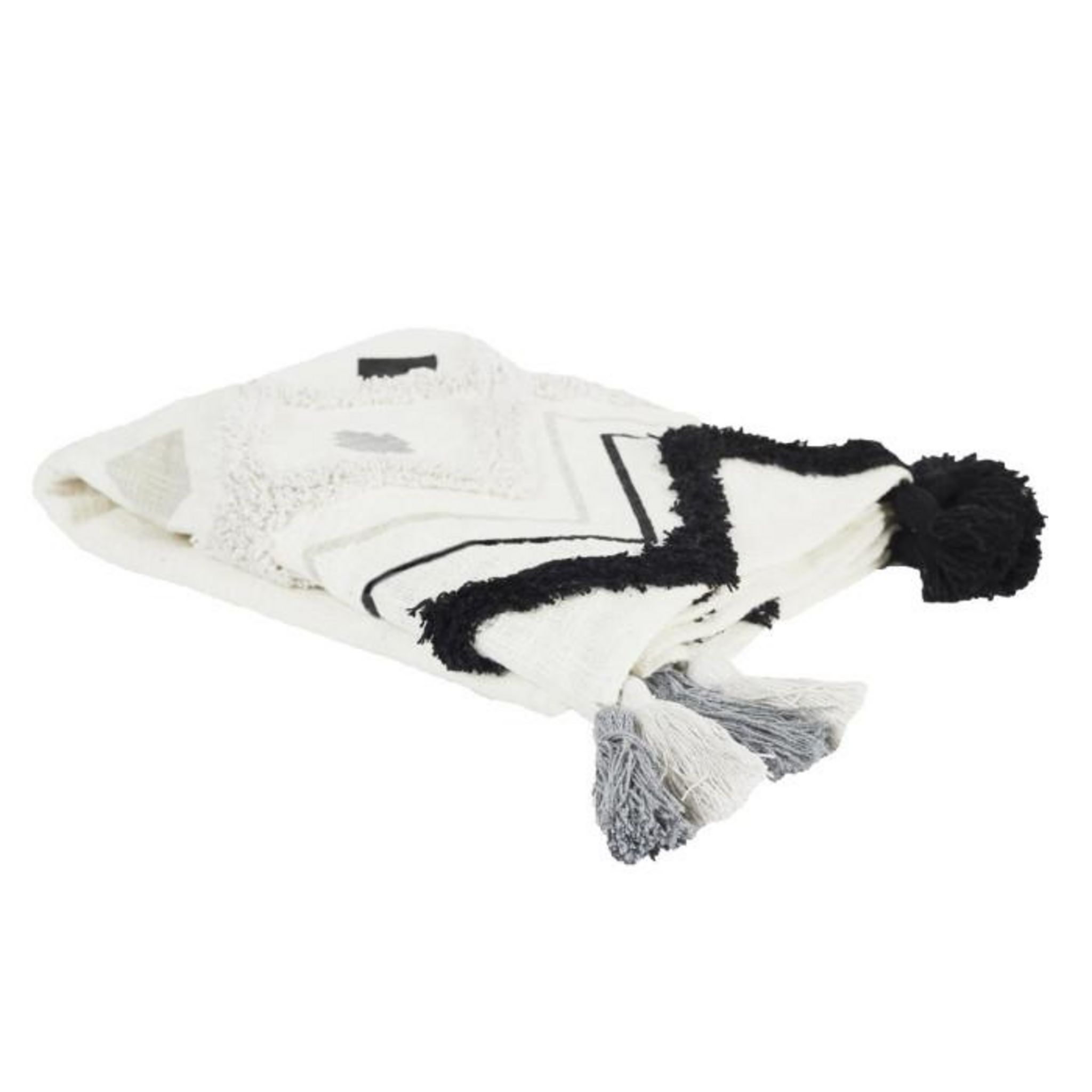 Informations Techniques : Dimensions : L. 130 x l. 150 x H. 0,5 cm Matière : Coton Spécificités : Pratique & Utile Jeté de Canapé Forme Rectangulaire Effet Tufté Motif Ethnique Poids : 0,5 kg Couleur : Blanc & Noir