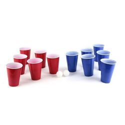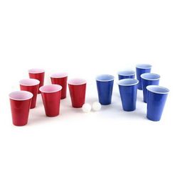 Informations Techniques : Dimensions : L. 9 x l. 9 x H. 12,7 cm Matière : Plastique Spécificités : Original & Fun Jeu à Boire 12 Verres Réutilisables 2 Balles Avec Notice Incluse Pour Ados & Adultes Facile d'Utilisation Couleur : Bleu & Rouge