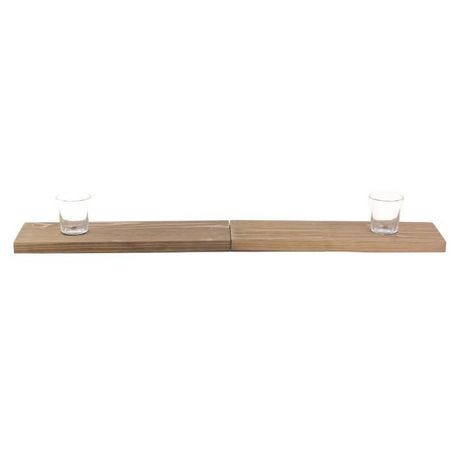 Informations Techniques : Dimensions : L. 60 x l. 9,8 x H. 6,7 cm Matières : Bois & Verre Spécificités : Pratique & Utile Jeu à Boire Contient 2 Verrines & 1 Plateau Pliable Notice incluse Facile d'entretien & d'utilisation Couleur : Naturel