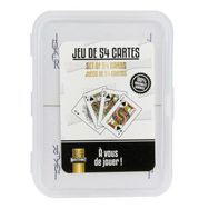 Informations Techniques : Dimensions : L. 6,3 x l. 1,6 x 8,9 cm Matière : Carton Spécificités : Pratique & Utile Jeu de 54 Cartes Boîte de Rangement incluse Packaging de la boîte peut changer selon arrivage Poids : 0,08 kg Couleur : Blanc