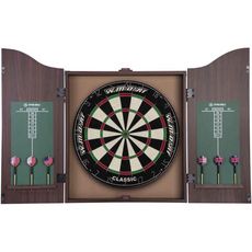 Informations Techniques : Dimensions : Cible : D. 45 cm Portes Fermées : L. 60 x l. 50 x H. 8 cm Largeur Dépliée : L. 95 cm Matières : MDF, Acier & Fibres Naturelles de Sisal Spécificités : Pratique & Utile Jeu de Fléchettes Professionnel Résistance Accrue dans le Temps Destinée à un usage avec Flé