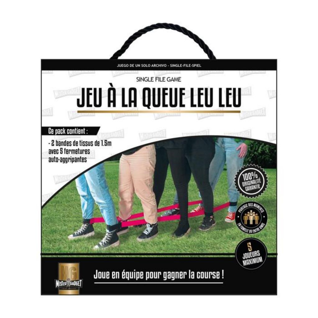 Informations Techniques : Dimensions : L. 110 x l. 1 x H. 5 cm Matière : Polyester Spécificités : Pratique & Utile Jeu de la Chenille 5 Joueurs maximum Contient : 2 Bandes de Tissu avec 5 Fermetures Auto-Aggripantes Idéal pour Partager des Moments en Famille ou entre Amis 100% Originalité Garantie