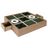 Informations Techniques : Dimensions : L. 30 x l. 30 x H. 5 cm Matière : 100% MDF Spécificités : Pratique & Amusant Jeu de société Morpion Contient : 1 x plateau 2 x tiroirs de rangement 10 x pions Poids : 1,06 kg Couleur : Vert & Naturel