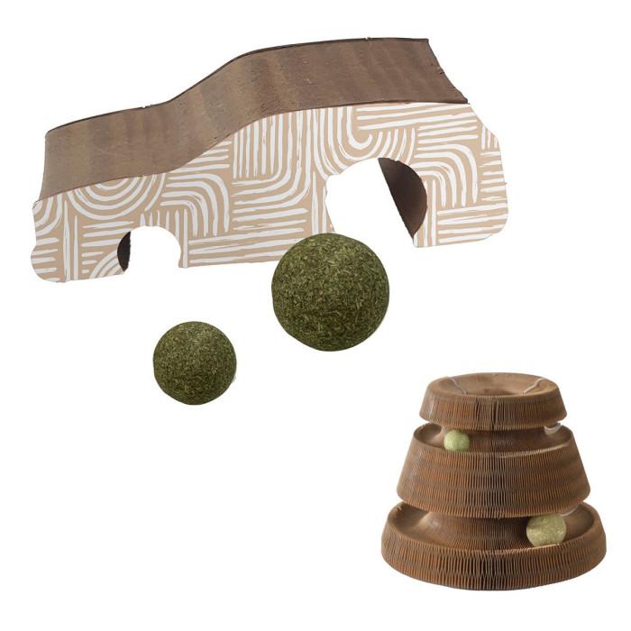 Informations Techniques : Dimensions : L. 18,4 x l. 7 x H. 6 cm Matière : Carton Spécificités : Modulable & Recyclable Griffoir pour chat aimanté Jouet intégré Avec herbe à chat Carton ondulé Poids : 0,36 kg Couleur : Naturel