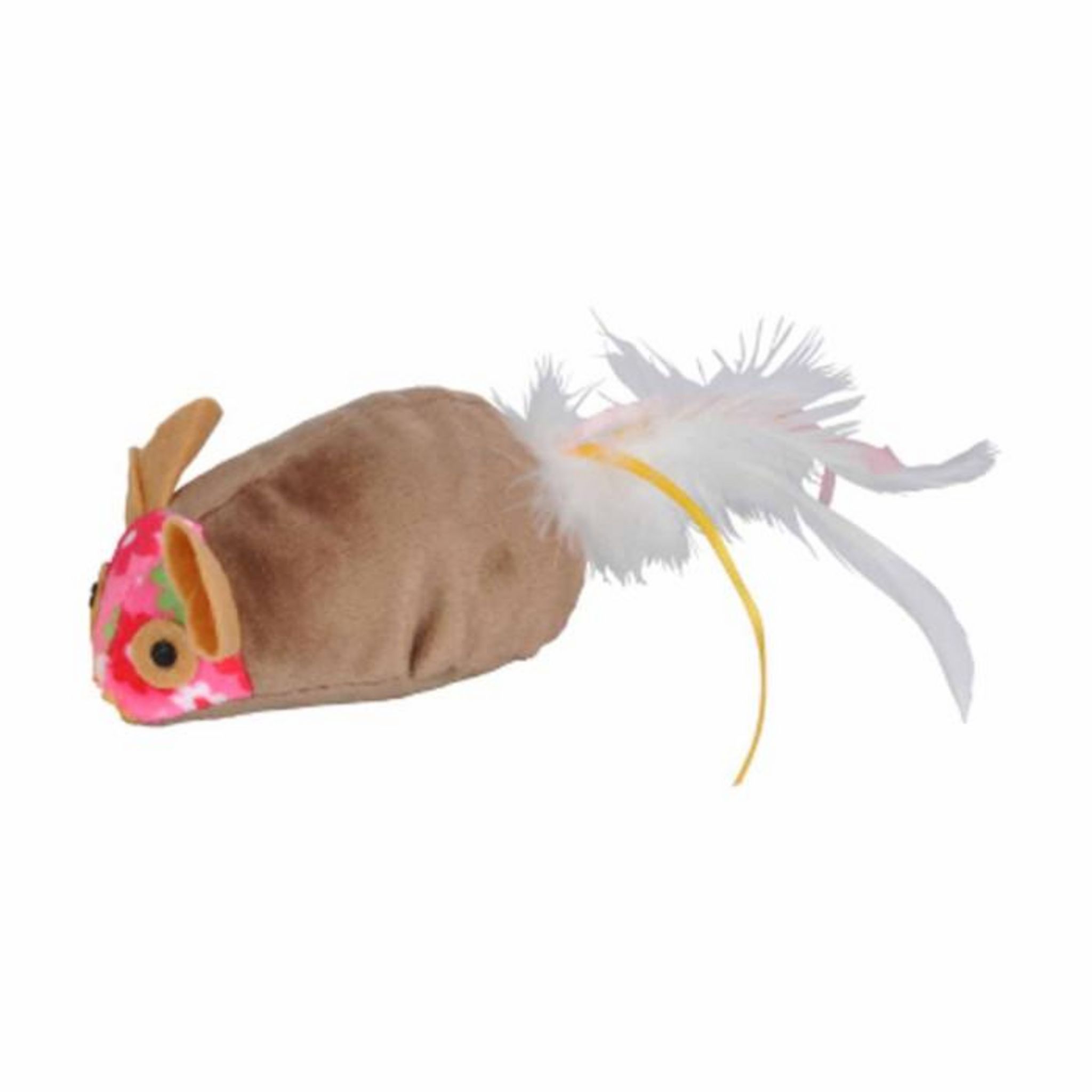 Jouet pour Chat Souris & Queue à Plumes 19cm Gris