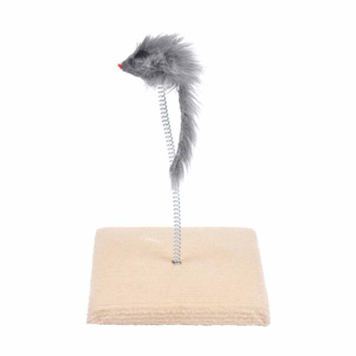 Informations Techniques : Dimensions : L. 14,3 x l. 14,3 x H. 16 cm Matière : Sisal Spécificités : Pratique & Efficace Jouet pour Chat Avec Ressort & Souris sur Plateau Couleur : Gris