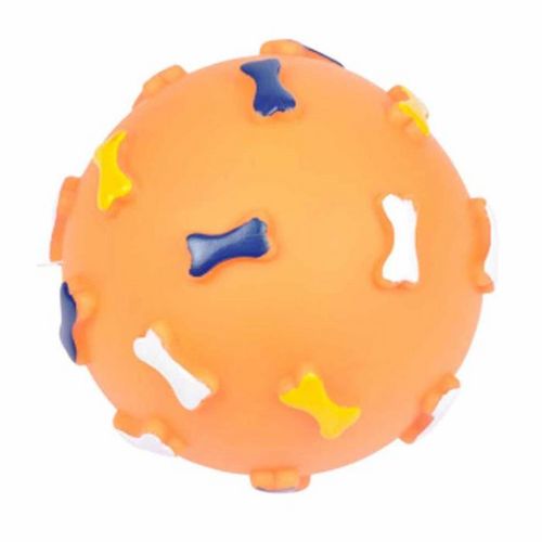 Informations Techniques : Dimensions : D. 12 cm Matière : Vinyle Spécificités : Pratique & Efficace Jouet pour Chien Forme de Balle Sonore A Motifs Os Couleur : Orange