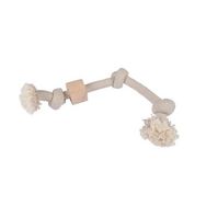 Informations Techniques : Dimensions : L. 48 x l. 6 x H. 6 cm Matière : Coton, Lin, Fibres Végétales & Bois (Hêtre) Spécificités : Ludique & Éco-Responsable Jouet pour Chien Corde avec 3 Noeuds Taille L Coton & Lin Naturels non Blanchis Hêtre non Traité Résistant & Anti-Tartre Certification FSC (Fo