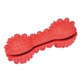 Informations Techniques : Dimensions : L. 15 cm Matière : Caoutchouc Spécificités : Pratique & Efficace Jouet pour Chien Idéal pour les dents Distributeur de Croquettes Forme Os Couleur : Rouge