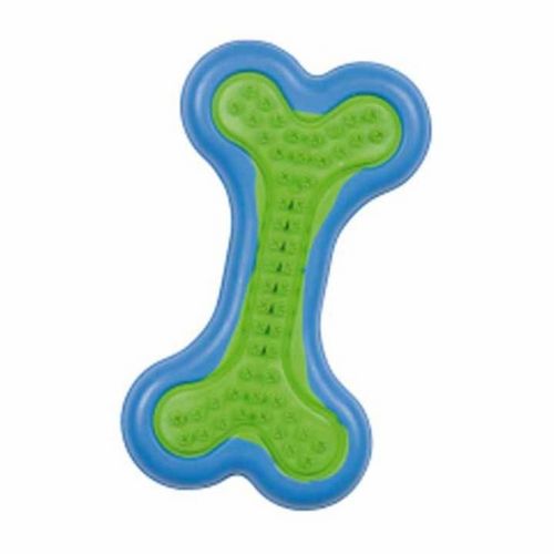 Informations Techniques : Dimensions : L. 11,5 cm Matière : Caoutchouc Spécificités : Pratique & Efficace Jouet Pour Chiens Sonore Idéal pour les Dents Forme de Os Couleur : Vert & Bleu
