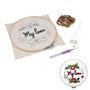Informations Techniques : Dimensions : D. 21,5 cm Matière : Toile Spécificités : Utile & Pratique Kit complet Contient 1 Toile à broder imprimée, des Échevettes, le Tambour à broder & la Punch needle Inscription My Love Couleur : Blanc