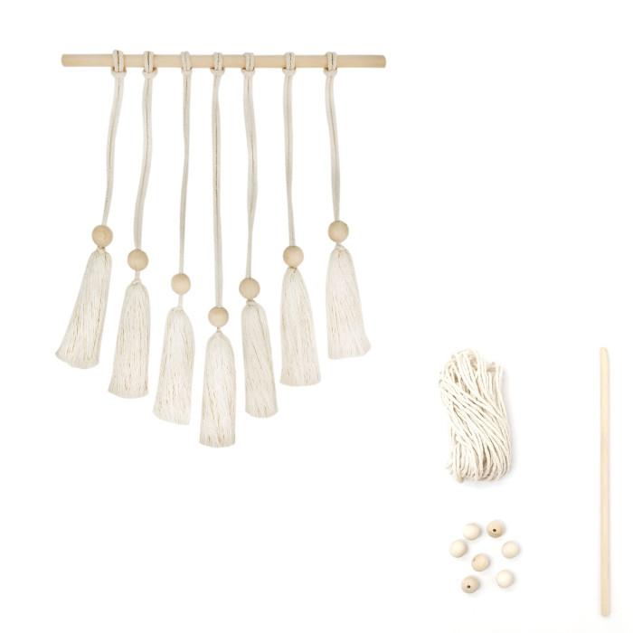 Informations Techniques : Dimensions : L. 30 x l. 22 x H. 4 cm Produit fini : L. 25 x H. 35 cm Matière : Tissu Spécificités : Utile & Pratique Kit suspension murale Style Macramé Couleur : Naturel