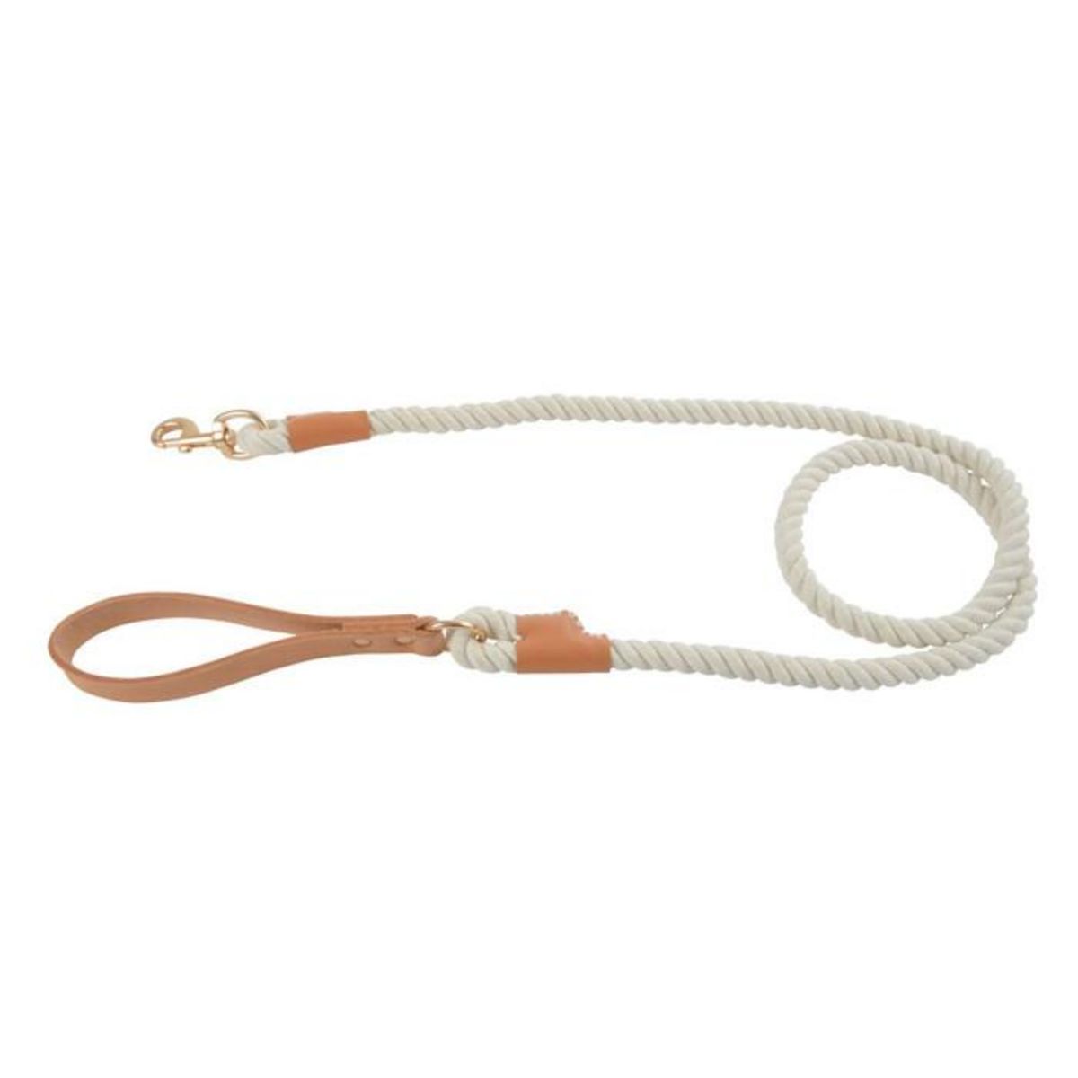 Informations Techniques : Dimensions : L. 150 x D. 1,5 cm Matières : Cuir & Coton Spécificités : Confortable & Moderne Laisse pour chien Design corde Poids : 0,17 kg Couleur : Écru