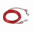 Informations Techniques : Dimensions : L. 6 m Épaisseur de la laisse : 5 mm Matière : Acier Spécificités : Pratique & Efficace Laisse d'Attache Ultra Résistante Pour Chiens Couleur : Rouge