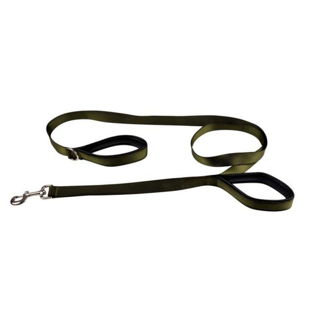 Informations Techniques : Dimensions : L. 250 x l. 2,5 cm Matière : Polyester Spécificités : Pratique & Résistante Laisse de Dressage Double Poignées Poids : 0,13 kg Couleur : Kaki