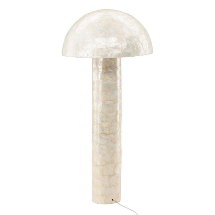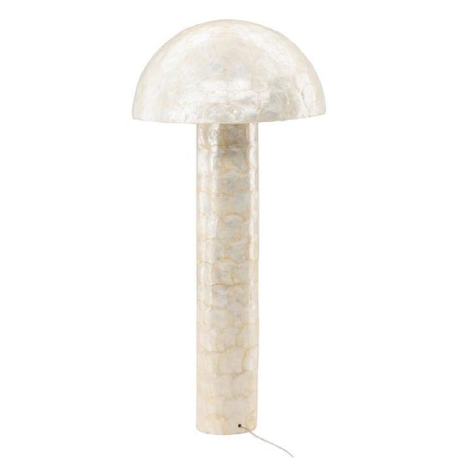 Informations Techniques : Dimensions : D. 55 x H. 120 cm Matières : Capiz, Polyrésine & PVC Spécificités : Design & Moderne Lampadaire design Style champignon En coquillage capiz Douille : E27 Puissance : 60W Poids : 12,8 kg Couleur : Gris Clair