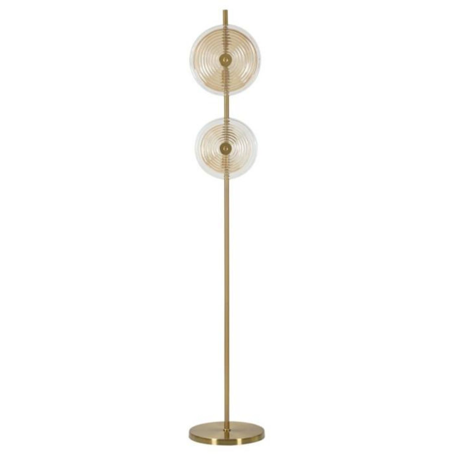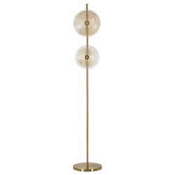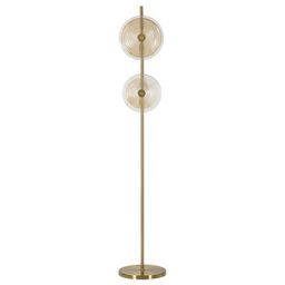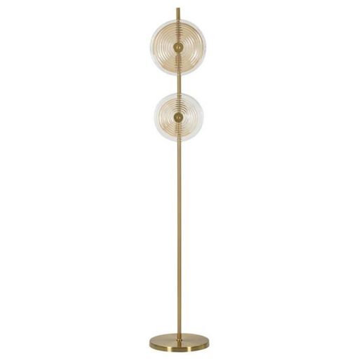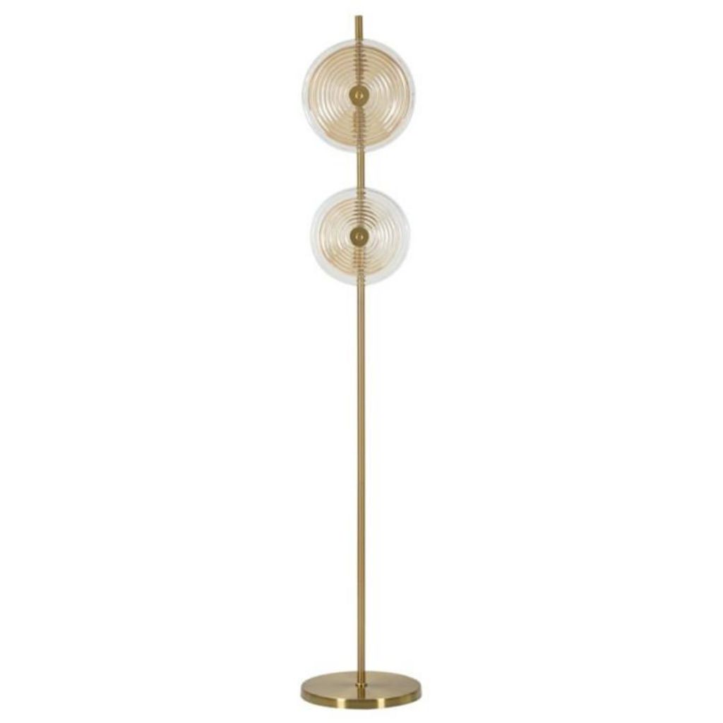 Informations Techniques : Dimensions : L. 30 x l. 30 x H. 170 cm Matières : Métal & Verre Spécificités : Chic & Utile Lampadaire design Abat-jours disques ronds Ampoules non incluses Douille : E14 Puissance : 40 W Voltage : 220 V Fréquence : 50 Hz Poids : 4,5 kg Couleur : Or, Marron & Transparent
