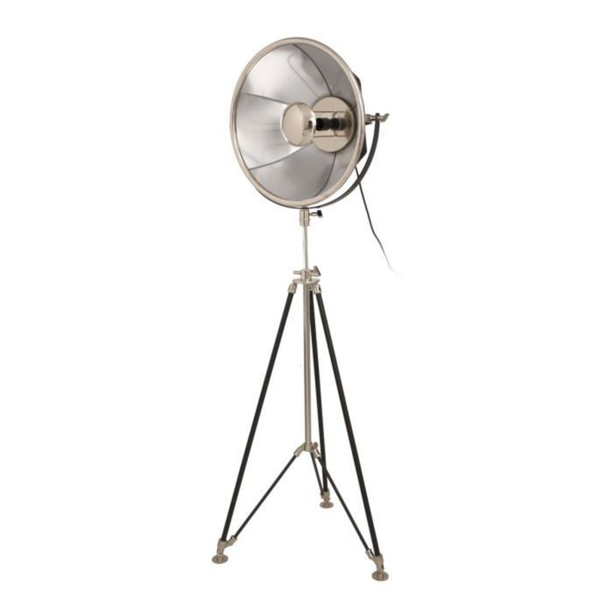 Informations Techniques : Dimensions : L. 53 x l. 57 x H. 157 cm Longueur du câble : 350 cm Matières : Acier, Aluminium, Coton & PVC Spécificités : Moderne & Tendance Lampadaire design Style Vintage & Rétro Trépied réglable en Hauteur Type de Douille : E27 Puissance max : 40W Ampoule non incluse Fab