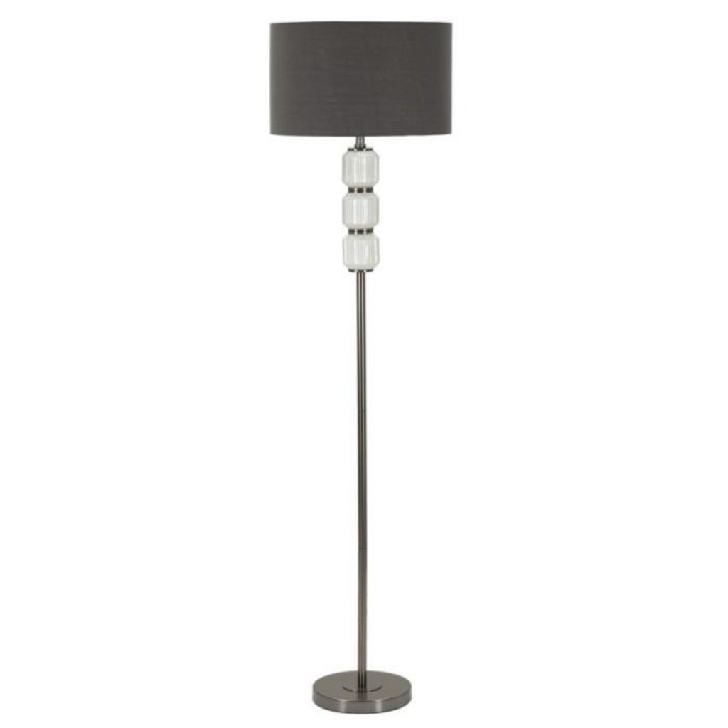 Informations Techniques : Dimensions : L. 42,5 x l. 42,5 x H. 163 cm Matières : Verre, Métal & Tissu Spécificités : Elégant & Utile Lampadaire design Abat-jour en tissu Ampoule non incluse Douille : E27 Puissance : 40 W Voltage : 220 V Fréquence : 50 Hz Poids : 5,2 kg Couleur : Blanc & Gris