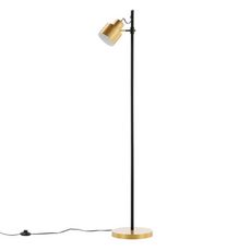 Informations Techniques : Dimensions : L. 40 x l. 25x H. 139 cm Matières : Acier & PVC Spécificités : Pratique & Élégant Lampadaire design Effet laiton Douille : E27 Puissance : 40W Poids : 3,8 kg Couleur : Noir & Or