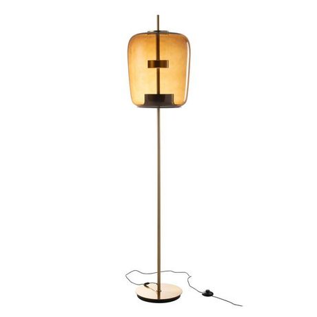 Informations Techniques : Dimensions : L. 35 x l. 35 x H. 168 cm Câble : L. 480 cm Matières : Verre & Métal Spécificités : Élégant & Design Lampadaire à LED Interrupteur à pied À monter soi-même Eclairage : LED Poids : 7,36 kg Couleur : Marron
