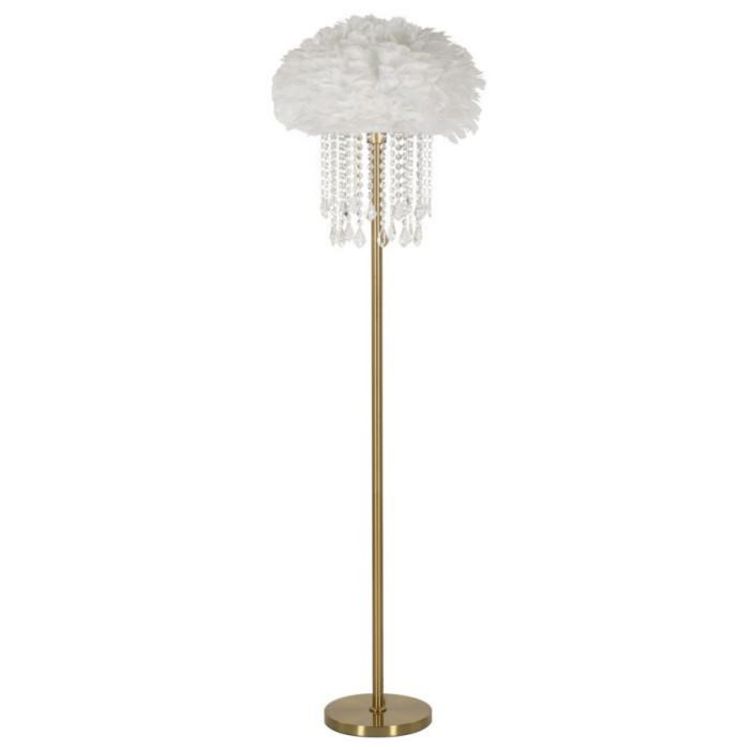 Lampadaire Imitation Plume Diamon 165cm Or & Blanc